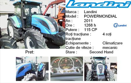 » Detalii anunt: Landini Power Mondial,an de fabricatie 2011,1268h cu 115 CP,tractiune 4X4 tractiune,climatizare,cutie de viteza manuala,stare second hand,in perfecta stare de functionare.