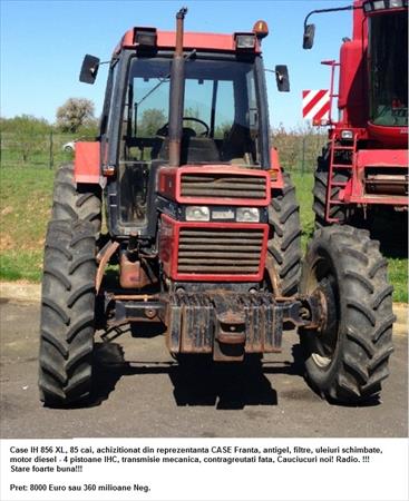 Case 856XL, 85 cai, import reprezentanta CASE Franta, antigel, filtre, ulei schimbate, motor diesel 4 pistoane IHC, transmisie mecanica, greutati fata, anvelope foarte bune, Radio.